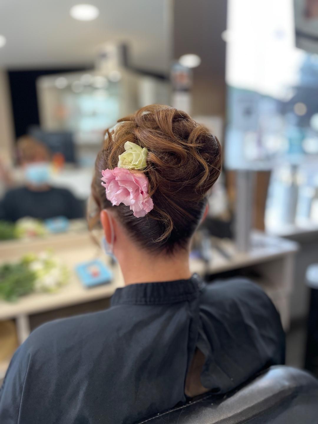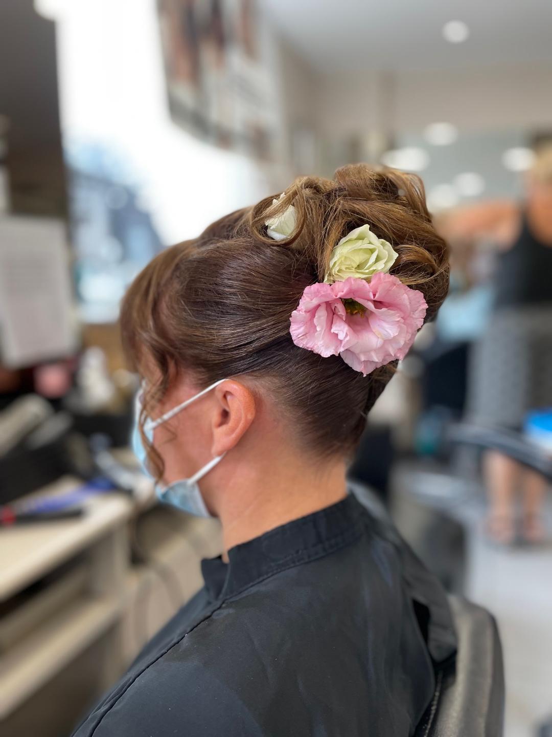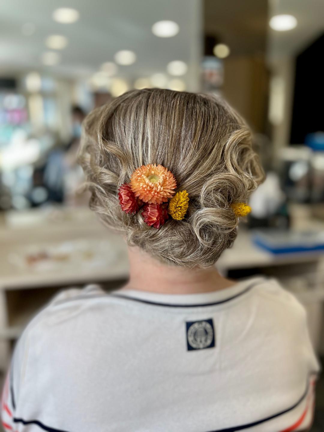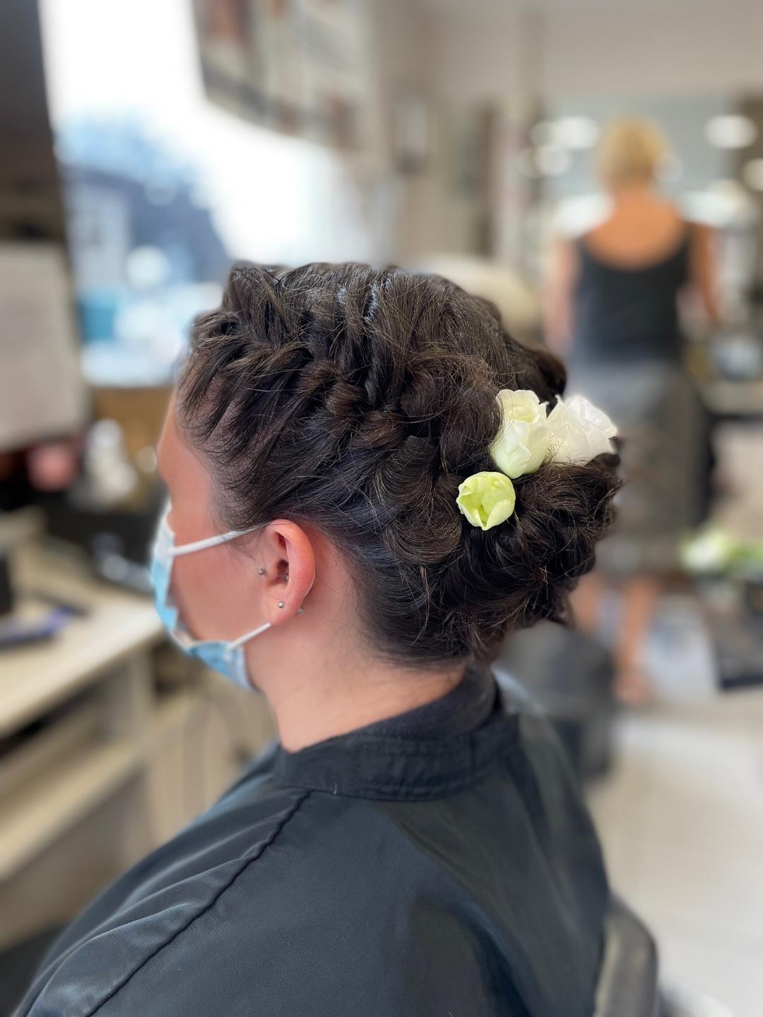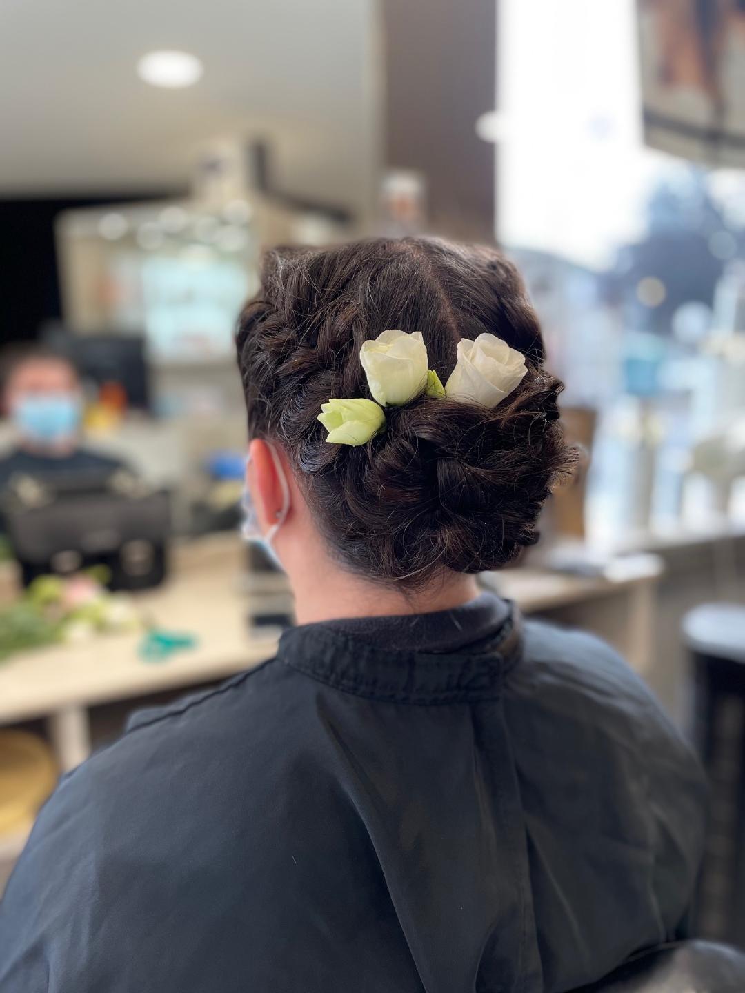 Coiffure avec fleurs fraiches